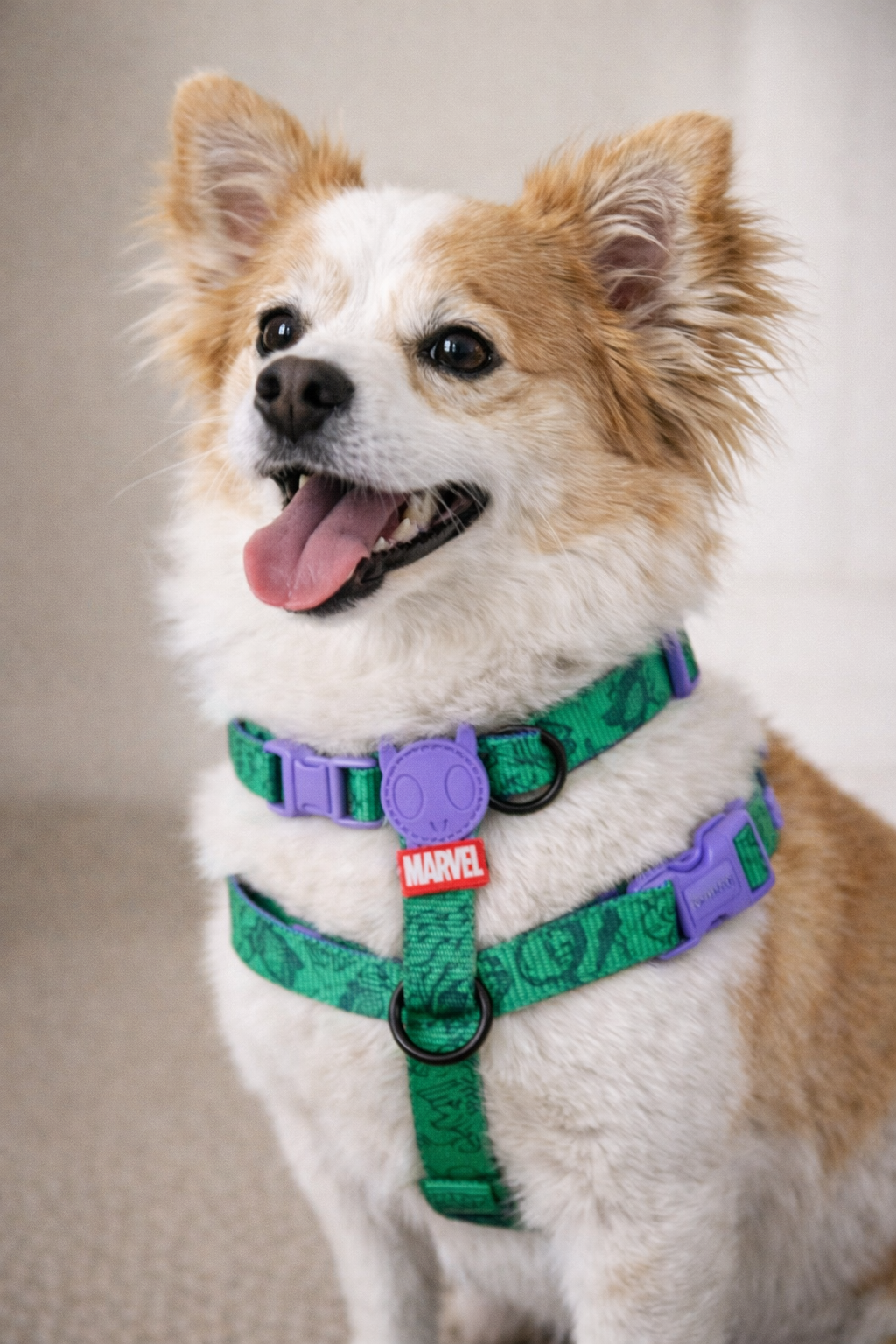 El arnés en forma de H de Hulk forma parte de la edición limitada de Marvel | Zee.Dog. Es un arnés para perros fácil de usar e ideal para el uso diario. Es totalmente ajustable y tiene dos anillos en D en la espalda, lo que ofrece dos opciones seguras para enganchar la correa.