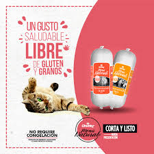 La nueva comida para gatos de Chunky, dieta barf gatos, ofrece un nuevo estilo de alimentación mucho más natural y real. Este alimento crudo proporcionará un estilo de alimentación similar al que tenían sus ancestros felinos carnívoros. Estas barras de comida serán un alimento completo, sano y balanceado que aportarán todos los nutrientes necesarios para llevar un estilo de vida saludable. Es un alimento 100% natural y rico en nutrientes que también se encargarán de fortalecer el sistema inmunológico de tu gato. Además, posee un sabor, aroma y textura atrayente que tu gato disfrutará en cada comida. Puedes encontrarlo en 2 diferentes sabores: Pollo y salmón.