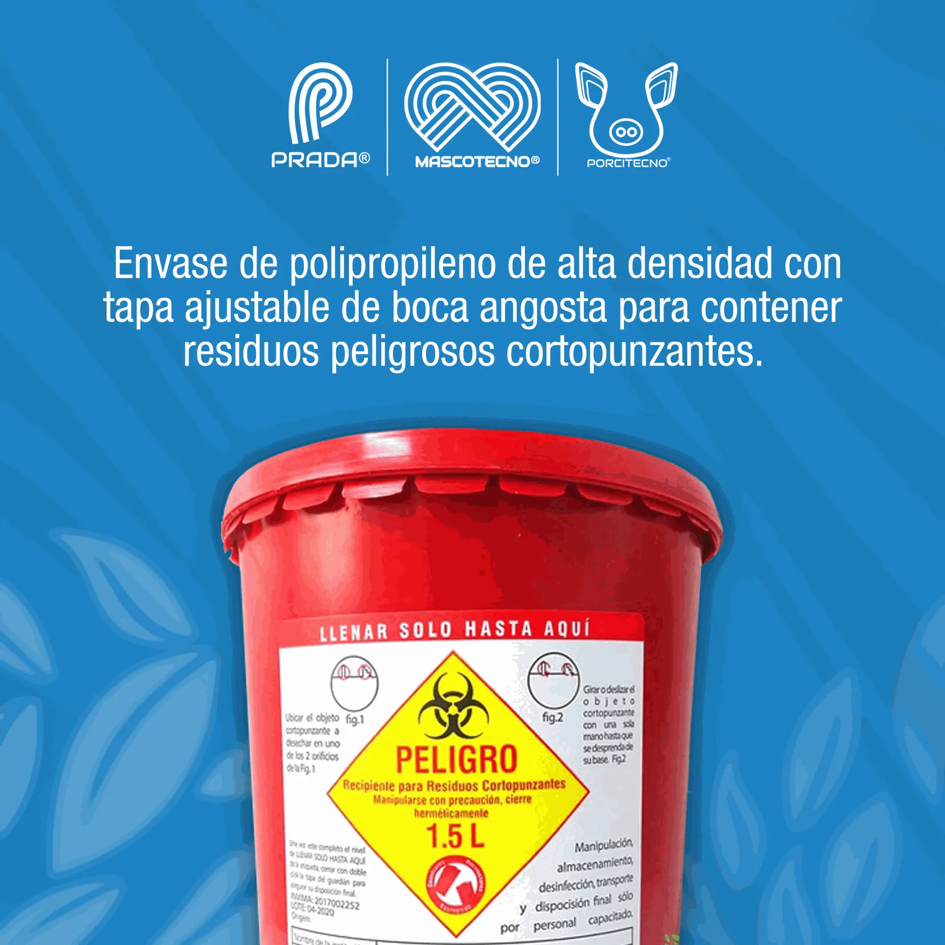 Rígidos, en polipropileno de alta densidad u otro polímero que no contenga P.V.C. Resistentes a ruptura y perforación por elementos cortopunzantes. Con tapa ajustable o de rosca, de boca angosta, de tal forma que al cerrarse quede completamente hermético.
